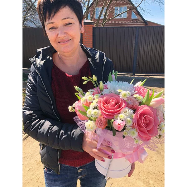 Хочу поблагодарить вас! Учли все мои пожелания и собрали коробку цветочную просто восторг! Мой подарок для юбилярши был самым красивым на празднике. Твердая 5 и за сервис и за качество цветов!!!